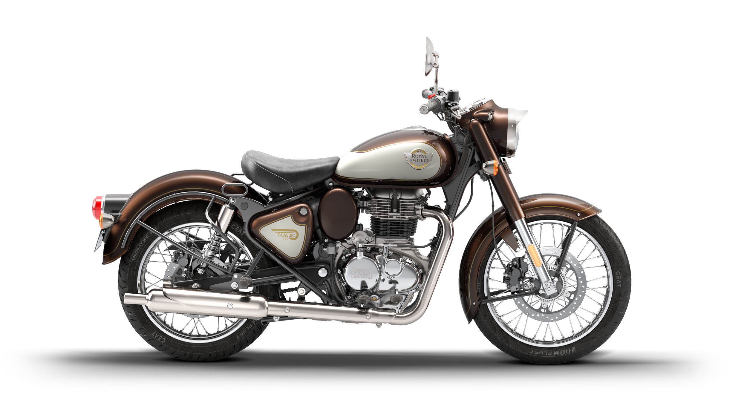 Den helt nya Classic 350 förkroppsligar traditioner och hantverk från det förflutna när den nu föds på nytt. Inspirerad av efterkrigstidens G2-modell fortsätter den att vara ett bevis på den tidlösa designen som tog motorcykelvärlden med vördnad under den brittiska storhetstiden. Designad på den nya 350 J-plattformen med en oklanderlig bränsleinsprutning, balansaxel för mjuka varvtal och en lätt koppling för skonsamma växlingar levererar Classic den mjukaste och mest raffinerade körupplevelsen. Den klassiska droppformade bränsletanken, det distinkta ljudet och den kännetecknande strålkastaren med keps - allt harmoniserar och man kan inte annat än att återigen uppskatta den nya och tidlösa Royal Enfield Classic 350.